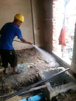 อัดน้ำยาเคมีลงดินพื้นที่ภายในอาคารทุก 1 เมตร
