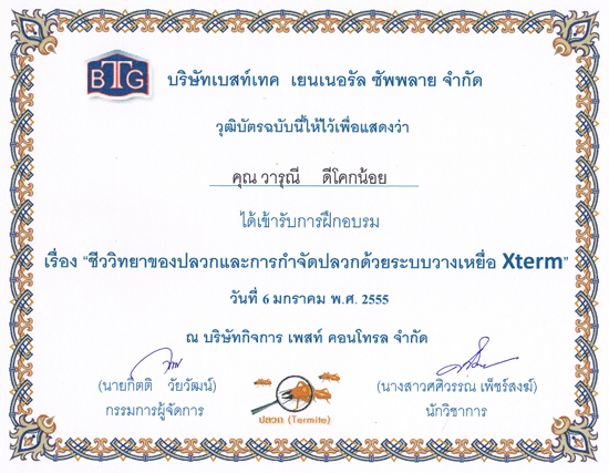 หนังสือรับรองการผู้ควบคุมการขายวัตถุอันตรายฯ